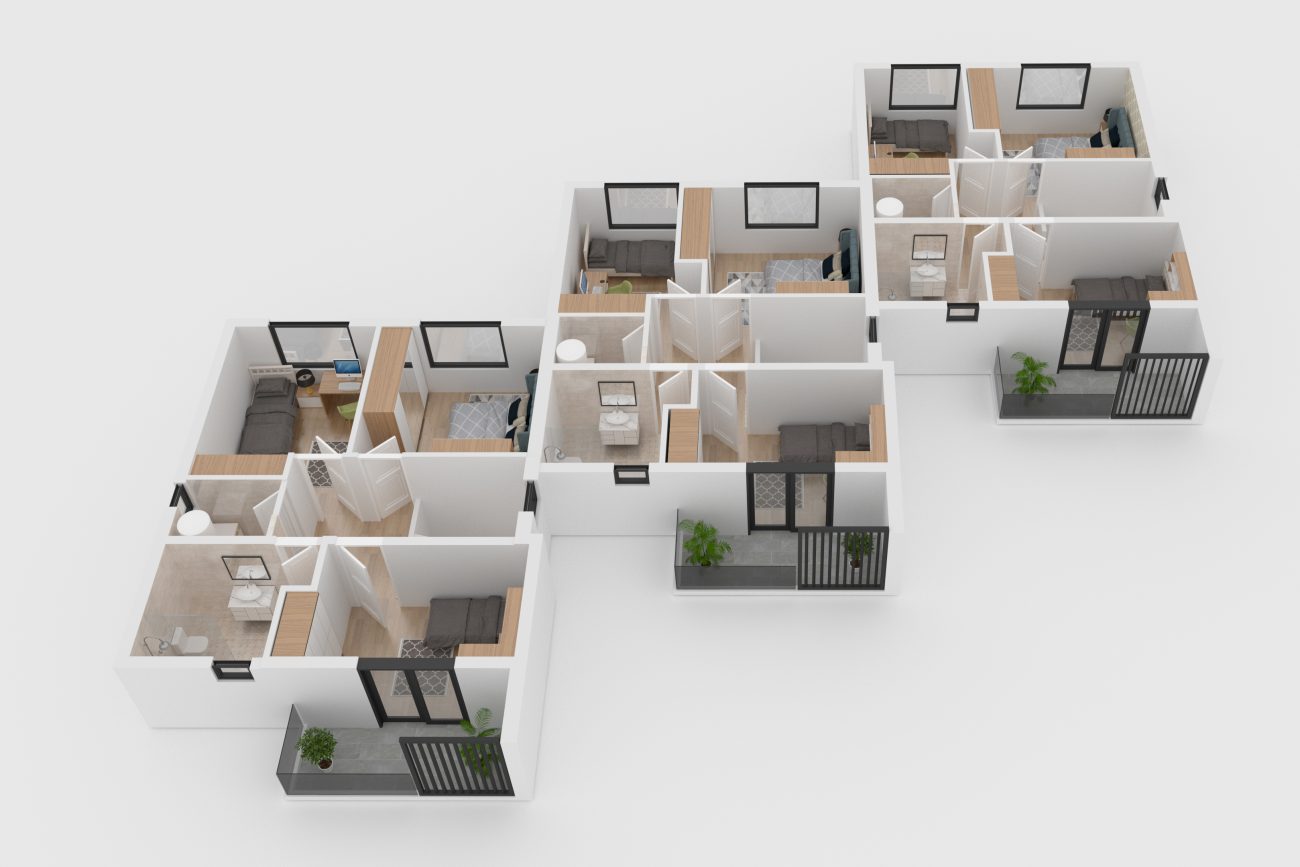 Svaki od naših objekata dobro je promišljen. Projektiramo i gradimo objekt u kojem bismo i sami željeli živjeti. Razmišljamo kako ga namjestiti namještajem standardnih dimenzija. Spavaće sobe su komotne i lako namjestive. Tako će svaki od budućih ukućana imati svoju malu oazu, mir i intimu. Kroz čitav proces gradnje mislimo na buduće stanare; što bi oni voljeli od svog budućeg doma i hoće li svaki centimetar biti dobro iskorišten.